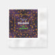 De délicieux citrouilles de Jack-o'-lantern souriants sur un arrière - plan bokeh violet profond, Happy Halloween saluant en blanc police et nom en vert néon décorent ces serviettes en papier de cocktail inventées. Apportez facilement des modifications de texte à l'aide du Modèle fourni. Idéal pour la fête d'Halloween ou un petit rassemblement d'octobre. Cette serviette est pliée de 4,75 po x 4,75 po, vendue en séries de 50 et imprimée en couleur sur votre choix de blanc ou écru. Styles de serviette standard ou inventés disponibles dans cette taille. Plus de choix