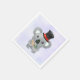 Des serviettes avec l'illustration d'un koala gris mignon mangeant quelques feuilles d'eucalyptus, portant un chapeau noir fantaisie avec un ruban rouge. Placez-vous sur un arrière - plan d'aquarelle numérique violet clair.