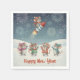 Add festive joy to your holiday table with these adorable watercolor Happy New Year napkins featuring cheerful mice in colorful knitted hats and scarves watching fireworks in a snowy winter landscape. A playful mouse soars into the night sky on a rocket while the others cheer below, capturing the fun and excitement of New Year celebrations. The text “Happy New Year” is customizable, allowing you to add a personal and festive touch. The charming boho watercolor style brings cozy winter warmth and whimsical woodland charm to every celebration. Perfect for families, kids, and anyone who loves cute animals and cheerful holiday art. Part of a collection with matching cards and party supplies.
