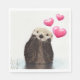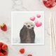 Serviettes en papier avec l'image d'une loutre mignonne avec les coeurs flottant vers le haut. Les coeurs sont roses et somptueux avec une brillante réflexion.Cette loutre est très adorable avec ses pattes reposant sous son petit menton furieux. Sa fourrure a l'air mouillée depuis qu'il est dans l'eau.