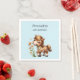 Serviettes en papier avec une adorable illustration. Un petit poney marron se régalant de marguerites.