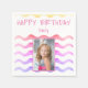 Cette jolie serviette en papier marine avec la photo et le nom d'un enfant est parfaite pour célébrer l'anniversaire des enfants. Serviettes aux vagues abstraites roses, violettes, jaunes et blanches - idéal pour un anniversaire, spécialement pour les filles.