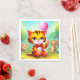 This image features s a tiger cub holding a pink balloon next to two other tiger cubs. The image is both adorable and majestic. It captures the innocence and playful nature of a tiger cub, as well as the strength and power of a tiger. The tiger cub's eyes are particularly captivating, and they seem to draw the viewer into the image.The tiger cubs look like they are having a lot of fun and they are enjoying each other's company. The pink balloon adds to the playful atmosphere of the image.