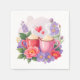 Serviette En Papier Cute Valentine Cocoa Mugs with Flowers & Hearts
