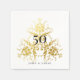 Serviette En Papier Damas blanc & or personnalisé 50e anniversaire
