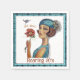 Ce graphique est un art peint à la main inspiré de l'époque Art déco, le style artistique des années 1920-1930. Il présente une femme des années 20 vêtue d'une robe bleue laquée et d'un casquette bleu avec des plumes. Vérifiez la collection pour coordonner les articles tels que les casquettes de plaques de fête et plus.