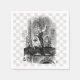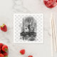 Emballage de 50 serviettes de cocktail en papier blanc avec un vintage A travers le verre d'apparence Alice agenouillé sur le manteau de cheminée, en regardant dans le miroir sur un damier gris et blanc. Voir serviette de cuisine, set de table en tissu, set de table en papier et dessous de verre assortis. Voir l'ensemble de la collection Wonderland Napkin dans FOOD/BEV | Section Linge.