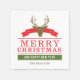 Parfaites pour un club sportif, un club de dîner ou pour votre usage personnel pendant la saison des Fêtes, ces serviettes en papier présentent une silhouette de tête de cerf brun sur une image de ruban rouge vif. En bas se trouve le texte en rouge correspondant qui dit MERRY CHRISTMAS, et un bloc vert avec le texte blanc qui dit ET HEUREUX NOUVEL AN. Votre texte personnalisé est en brun ci-dessous.