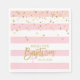 Magnifique moderne mais élégant BAPTISM serviettes en papier jetable pour votre fête. Pas bon marché mais cher et classe. Nom et date du bébé. Faux feuille d'or confetti arrière - plan avec croix rose. Rose clair pastel aux rayures blanches. La police et la taille peuvent être modifiées. La couleur Arrière - plan peut être modifiée. Des serviettes de cocktails sont également disponibles. Contacter le concepteur pour des designs spéciaux.