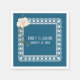 Elégant cadre en dentelle blanche carré avec bouquet de mariée hydrangée blanche sur arrière - plan bleu. Pour une fête d'anniversaire mariage ou une réception de renouvellement de Vow mariage. Le texte est modifiable.