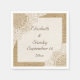 Elégante dentelle blanche sur burlap chic serviette en papier mariage avec dentelle blanche fleurie sur le lin burlap naturel ou hessian qui couvre deux coins d'un rectangle blanc avec bordure en burlap beige. Texte en marron. Notez que la dentelle et le burlap sont tous "imprimés" et non de vrais tissus. Ce design élégant, sophistiqué et romantique à l'essence rustique fait partie d'un ensemble mariage et est parfait pour un country chic ou western printemps, été ou automne/automne mariage douche nuptiale, réception, fiançailles, ou fête d'anniversaire avec une palette de couleurs neutres.