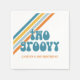 Deux serviettes Super Retro Style Anniversaire avec rayures jaunes, orange et bleues.