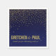 Ces serviettes de cocktail en papier modernes et tendance présentent des éclats de confettis carrés dorés qui se répandent sur le corps de cette serviette bleu marine. Produits correspondants disponibles. Comprend 6 couleurs : aubergine, marine, turquoise, noir, rose et sable. Cliquez sur le bouton CUSTOMISER IT pour personnaliser avec votre propre texte. POUR VOIR TOUTE LA COLLECTION, VISITEZ MON SITE WEB : glamprettyweddings.com. Pour toute question ou demande personnalisée, envoyez un courriel à cheryl@glamprettyweddings.com/contactez. Design "Diamonds in the Sky" par Cheryl Daniels © 2014.