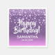 Une serviette de fête d'anniversaire élégante et glamour. Fille violet faux parties scintillant et dégradé rose avec une saupoudrée de diamant rose. Modèles pour un nom et une date. Date de naissance ou date de la fête/anniversaire. Lettres blanches.