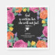 Beau, coloré rose, orange et bleu floral sur des serviettes en papier noir avec le verset de la Bible chrétienne Psaume 46:5 : Dieu est en elle. Elle n'échouera pas. Personnalisée avec le nom du diplômé, son nom d'école et son année de diplôme. Ces serviettes en papier sont parfaites pour la fête de remise des diplômes. Contactez-moi pour obtenir de l'aide sur vos personnalisations ou pour demander des produits Zazzle correspondants ou coordonnés supplémentaires.