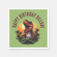 Des serviettes en papier pour la fête d'anniversaire à thème pour enfants amusants sont équipées de T-Rex avec coucher de soleil et plantes tropicaux sur arrière - plan vert. N'oubliez pas de vérifier les fournitures de fête de dinosaures correspondantes!