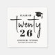 Cette serviette en papier simple et moderne pour fête de remise de diplômes présente une mise en page épurée et minimaliste avec un accent de chapeau de diplômé placé en haut à droite. « Class Of » apparaît dans une typographie serif classique, tandis que le mot « Twenty » est écrit dans un script manuscrit fluide. Le nombre « 26 » est glissé juste en dessous du texte manuscrit, également dans une police serif, créant une façon unique et élégante d'afficher « Class of 2026 ». En dessous, le nom du diplômé et de l'école sont affichés dans des polices serif assorties pour un look soigné et cohérent.