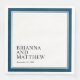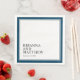 Design moderne classique pour mariage ou fiançailles, cette serviette en papier a un double cadre bleu marine avec un arrière - plan blanc. Les noms de la mariée et du marié et la date du mariage sont affichés dans le coin inférieur gauche du dessin. Le texte est laissé justifié pour un effet contemporain. Personnalisez le texte avec vos noms et votre date. Remarque : ces serviettes en papier sont disponibles en 3 tailles : taille du dîner (voir ici), taille du déjeuner et taille du cocktail.