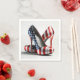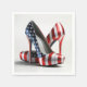Les chaussures à talons hauts au design inspiré du drapeau américain sont positionnées contre un arrière - plan simple