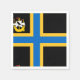 Papier à serviette avec design avec un drapeau du comté historique de Caithness, en Ecosse, Grande-Bretagne; drapeau noir avec croix nordique bleue et jaune et illustration d'un navire avec un corbeau sur sa voile dans le treuil supérieur