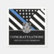 Cette conception comprend un drapeau de la police avec des rayures noires et blanches, ainsi qu'une fine bande bleue. Une excellente façon de féliciter la nouvelle académie de police diplômée. Customiser avec le nom de l'agent d'application de la loi diplômé en or. Célébrez cette étape importante dans le style!