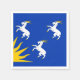 Papier à serviette avec design avec drapeau du comté historique de Merioneth, au Pays de Galles, Grande-Bretagne; drapeau bleu azur avec trois chèvres blanches et soleil jaune