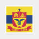 Papier serviette avec drapeau de la ville de St Paul, Minnesota; drapeau avec trois bandes horizontales de bleu et jaune avec emblème rouge au centre
