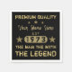 Un drôle de design d'anniversaire qui dit à l'homme le mythe la légende! Fournitures de fête d'anniversaire pour les hommes célébrant leur âge dans une année importante. Noir et or avec une police de caractères en détresse cool qui vous permet de personnaliser votre nom avec l'option personnaliser!