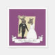 Design personnalisé avec une illustration de l'orignal, mignon marié heureux, marié porte un costume noir, mariée porte une robe blanche ; sur arrière - plan violet avec modèle texte personnalisable pour votre nom ou message