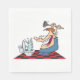 Un plombier amusant qui a un go avec un plongeur pour débloquer une toilette. Ce design semble vraiment efficace sur ces serviettes en papier