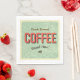 Un panneau indiquant que du café fraîchement préparé y est servi. Ce design semble vraiment efficace sur ces serviettes en papier