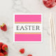Ce design amusant et élégant présente du texte EASTER à l'intérieur d'une large bande centrale blanche surmontée de rayures de course en noir, jaune et orange contre un arrière - plan rose vif. Le texte peut être personnalisé.