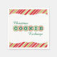 Cette serviette jetable Christmas Cookie Exchange a une forme de support blanc au centre et du texte personnalisable. Le mot "cookie" sur la serviette est accentué par des biscuits à pétoncles avec un gel et des arrosages rouge et vert clair. L'arrière - plan est un motif rayé en diagonale rouge et or.