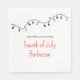 Patriotique 4 juillet serviettes de soirée barbecue, avec un design de lampes à cordes rouge blanc et bleu. Avec des lettres typographiques personnalisables en rouge et bleu, vous ajoutez vos propres informations. Un complément festif à votre fête de barbecue d'été.