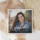 Une serviette décontractée manuscrite de graduation de la photo. Ces serviettes en papier ont une police de script avec une photo. Customisez le texte avec le nom des diplômés et le lycée. La serviette personnalisée parfaite pour votre fête de remise de diplômes.