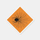 Des serviettes de fête d'Halloween orange amusantes imprimées avec une araignée effrayante sur son web.