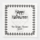 Utilisez le modèle fourni pour personnaliser ce design Halloween noir et blanc éffrayant. Cette lettre éffrayante d'Halloween, "Happy Halloween", est imprimée sur un arrière - plan blanc. Il y a une grande sculpture cachée au centre encadrée par un carré de crânes noirs. Le graphique de vacances effrayant, noir et blanc sera amusant à utiliser à votre fête d'Halloween à la maison, à l'école, ou au bureau.