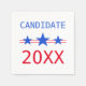 L'année électorale 2022 est en pleine ascension. Montrez pour qui vous soutenez et envisagez de voter avec ce design personnalisable avec des rayures rouges simples, élégantes et tendance et un motif bleu étoiles. Personnalisez avec le nom du candidat de votre choix.