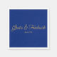 Cette serviette de cocktail mariage personnalisée est belle, simple minimaliste et élégante. Le design comprend les noms des jeunes mariés, date mariage dans la typographie des scripts d'or. Tout personnalisable, y compris l'élégant, sophistiqué et intemporel arrière - plan bleu royal.