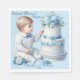 Serviette En Papier Élégant Baptême de Croix Florale Bleue