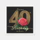 Serviette En Papier Elegant Black Gold Filigree Red Rose 40th Birthday