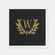 Serviette En Papier Élégant Black Gold Moderne Monogramme Mariage