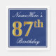 Serviette En Papier Elégant bleu, Faux Gold 87e anniversaire; Nom pers