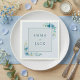 Serviette En Papier Elégant bleu vert noms mariage