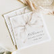 Simple romantic "She's tying the knot" napkins for a bridal shower with an elegant bow design.
