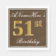 Serviette En Papier Elégant Brown, Faux Gold 51ème Anniversaire + Nom
