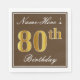Serviette En Papier Elégant Brown, Faux Gold 80e anniversaire + Nom