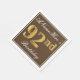 Cette conception simple et élégante de serviette en papier comporte un message comme "AnameHere’s 92nd Birthday" (avec le "92nd" ayant une fausse couleur dorée) dans une zone carré de couleur marron avec un contour de bordure simple. Le nom est dans un texte de type script de couleur blanche, et peut être personnalisé. Des serviettes comme celles-ci pourraient peut-être être utilisées à une fête d'anniversaire pour quelqu'un qui célèbre son quatre-vingt-dix-deuxième anniversaire. [~Z0000139]