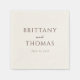 This wedding napkin features a minimalist and elegant design with a clean, uncluttered layout. The color palette is dominated by a rich dark brown hue on a plain background, creating a sophisticated look. Typography plays a central role, using bold serif fonts for the names and a delicate cursive script for "and," enhancing its formal yet personal feel. The generous spacing between lines adds to the refined aesthetic, making it perfect for a timeless and stylish wedding celebration.