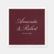 Minimalist personalized wedding napkins featuring elegant calligraphy names in burgundy and cream color design.